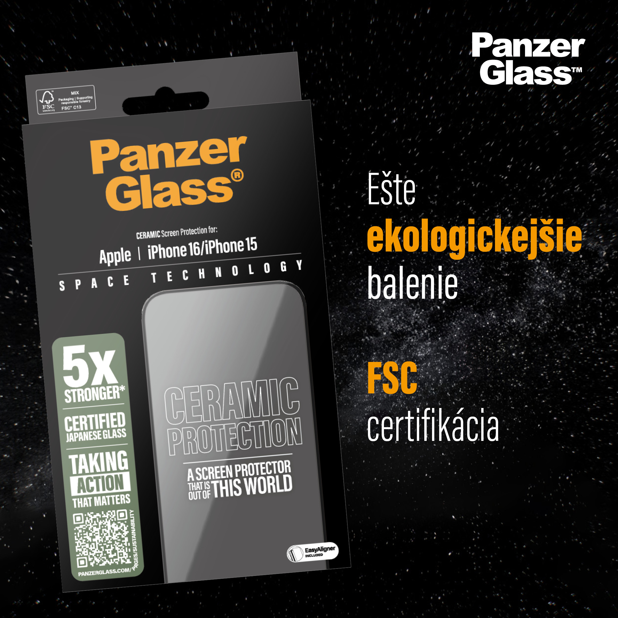 V roku 2024 spoločnosť PanzerGlass™ znížila množstvo papiera používaného na výrobu obalov priemerne o 66 %. A rovnako ako všetky ostatné produkty tohto dánskeho výrobcu, aj sklá pre iPhone 15 Pro Max sa dodávajú v krabičke vyrobenej z recyklovateľného papiera s certifikátom FSC™.