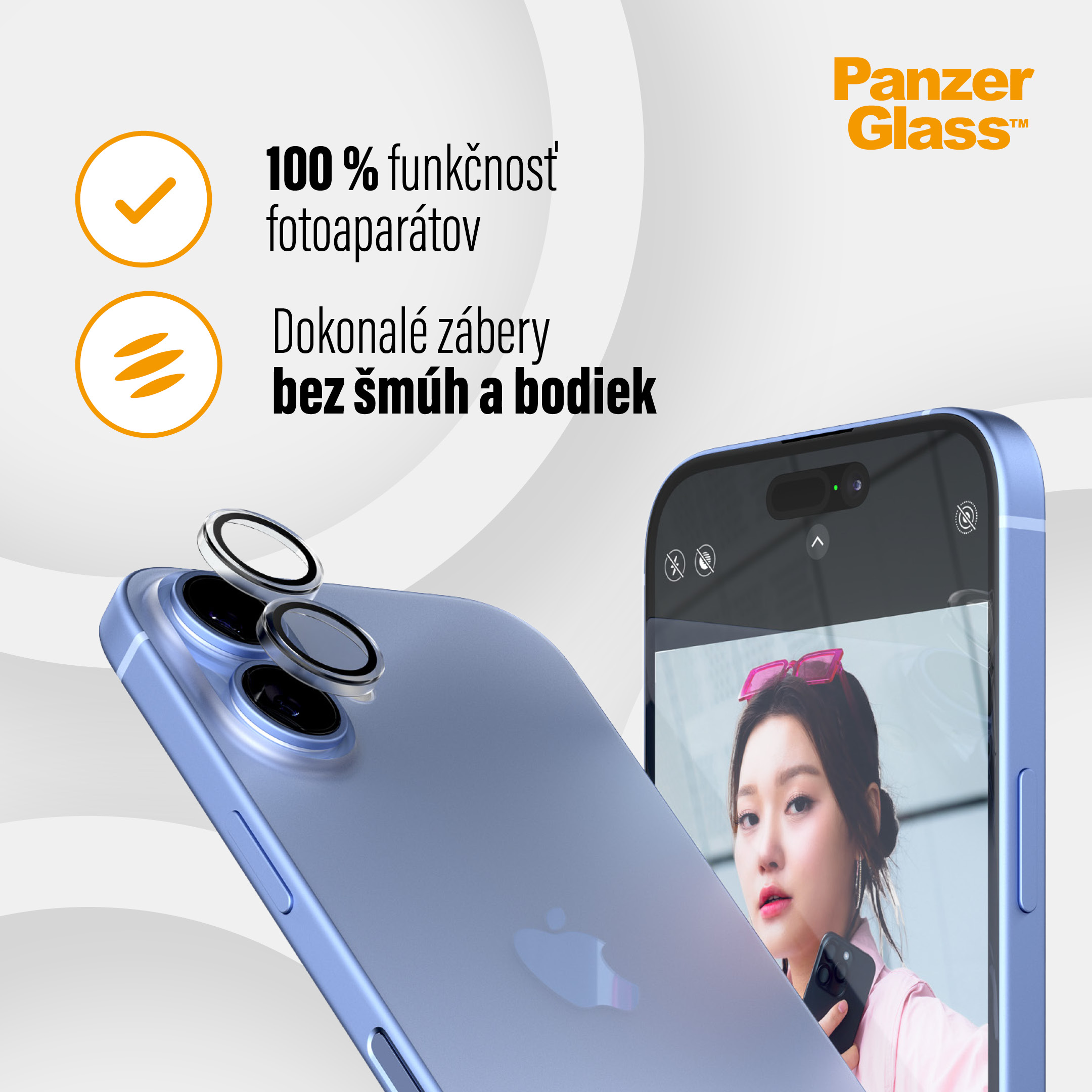 Elegantná ochrana objektívov; Nedovoľte, aby sa objektívy fotoaparátov vášho iPhone16 ľahko poškriabali pri pádoch, nárazoch alebo kontakte s ostrými predmetmi vo vreckách. Ochranné kryty PanzerGlass™ „Hoops“ pre iPhone16 sú vyrobené z jedinečného