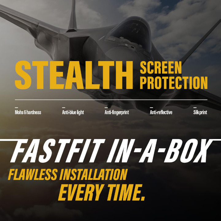 Technológia stealth, inšpirovaná vojenskými taktikami, prináša do ochrany displeja prvok neviditeľnosti a podobne ako pri radare ide aj tu o účinnú pasívnu obrannú stratégiu. Spája v sebe vysokú odolnosť a pokročilé funkcie, ktoré chránia nielen displej, ale aj váš zrak. Sklo s tvrdosťou Mohs 6 je mimoriadne odolné, zatiaľ čo antireflexná vrstva znižuje odlesky zo slnka aj umelého osvetlenia na menej než 1 %, takže obraz zostáva vždy čistý a jasný.