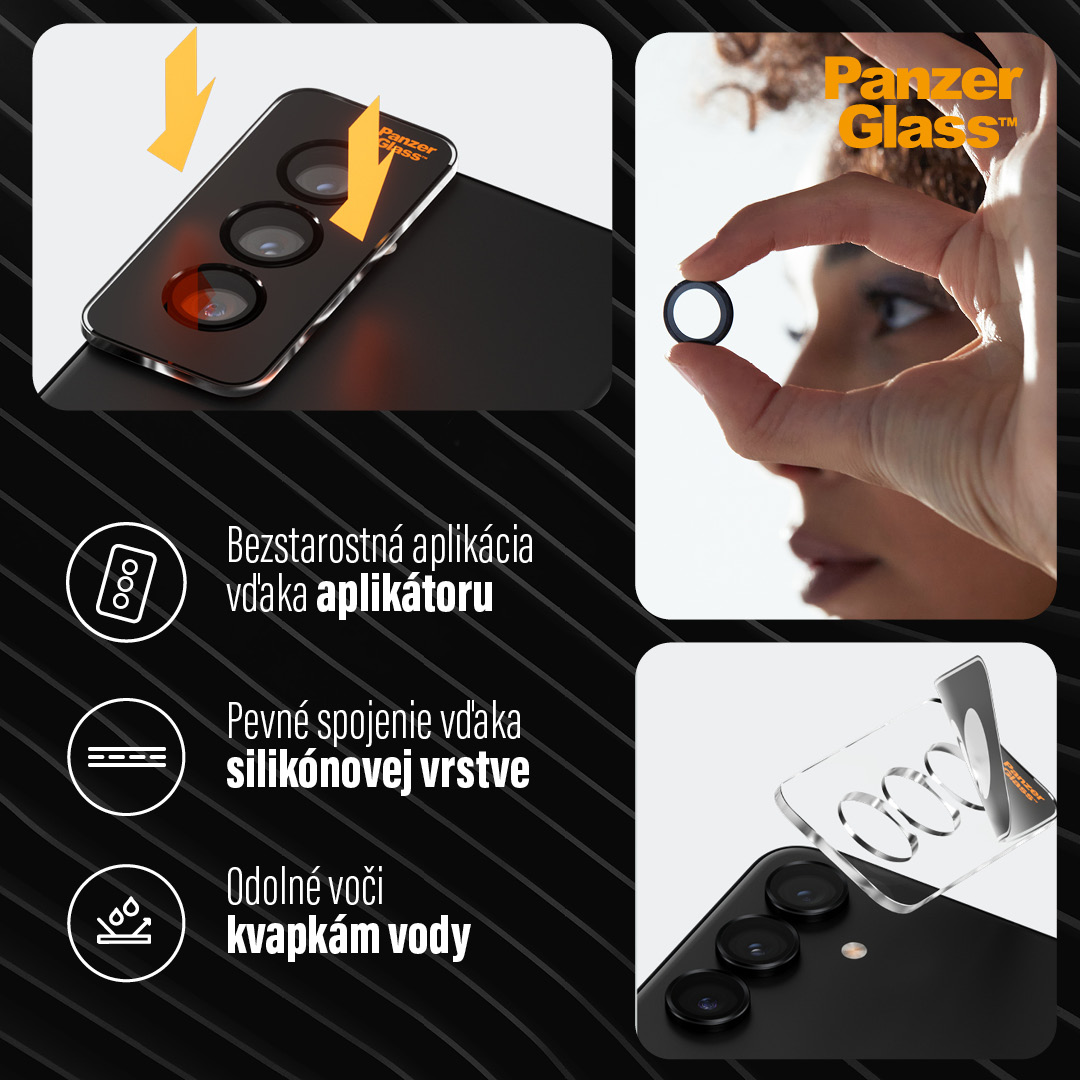 Elegantná ochrana objektívov; Nedovoľte, aby sa objektívy fotoaparátov vášho zariadenia ľahko poškriabali pri pádoch, nárazoch alebo kontakte s ostrými predmetmi vo vreckách. Ochranné kryty PanzerGlass™ „Hoops“ sú vyrobené z jedinečného japonského