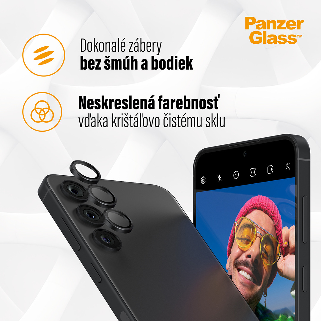 Štýlová ochrana objektívov; Ochráňte objektívy vášho Samsung Galaxy S25+ pred škrabancami a poškodením pri pádoch alebo silných nárazoch . Unikátne ochranné krúžky PanzerGlass™ Hoops sa postarajú o to, že vaše objektívy budú vždy v maximálnom
