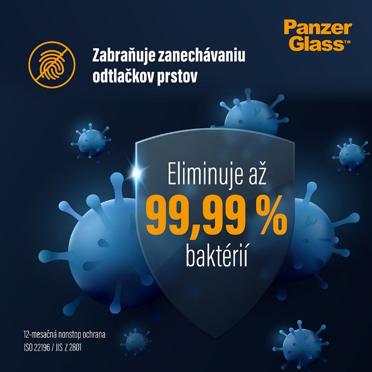 Povrch ochranného skla je naviac ošetrený netoxickým antibakteriálnym povlakom, ktorý poskytuje až 12-mesačnú non-stop ochranu a bol testovaný podľa prísnych noriem. Dokáže efektívne eliminovať 99,99 % baktérií, čím chráni vaše zdravie pred nežiadúcimi vírusmi a baktériami.