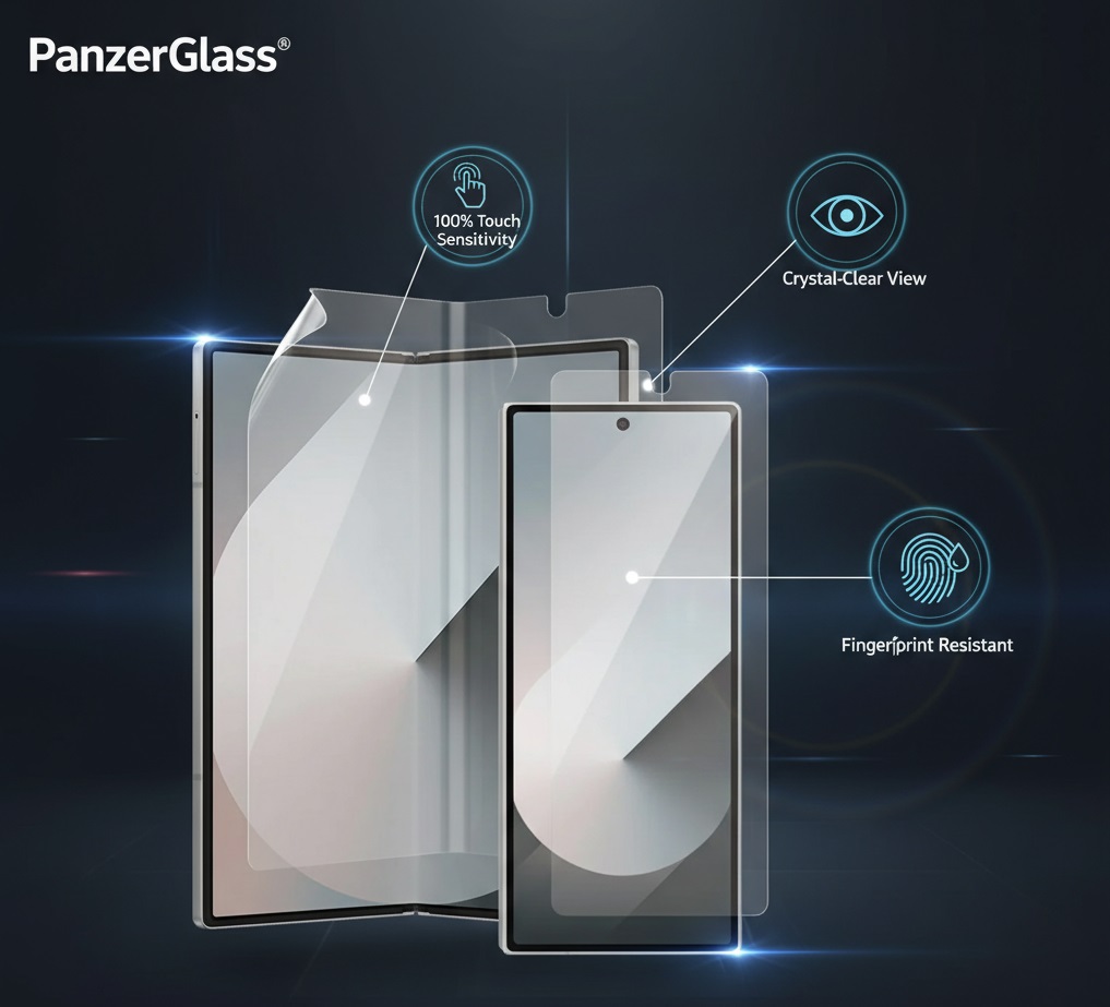 FlipFoldFlex – odolná ochrana pre obe obrazovky; Máte dva displeje? Potom potrebujete zdvojnásobiť ochranu obrazovky! Tento ochranný set 2v1 od značky PanzerGlass® určený pre Samsung Galaxy Z Fold7 ponúka nie jednu, ale až dve ochrany , ktoré